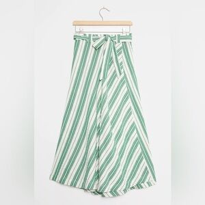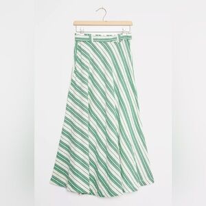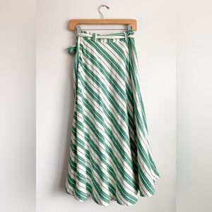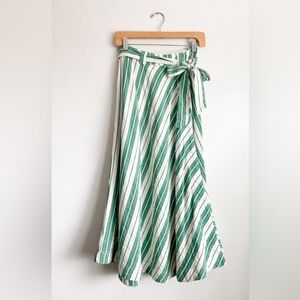 Anthropologie Maeve Green White Striped Full Wrap Maxi Skirt Cottagecore Boho 00