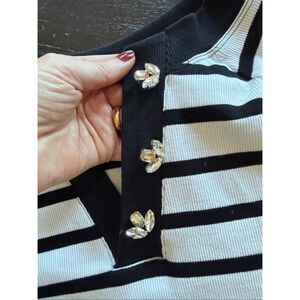 New!! Get chic, classic style with this Anthropologie Maeve Half-Sleeve Henley Tee featuring bold black and white horizontal stripes. The cotton-blend knit and decorative jeweled buttons on the V-neck placket make this comfortable top a perfect elevated casual piece. (without tag - accidentally popped off - tried on only)