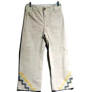 Anthropologie Maeve Hallee Embroidered Wide-Leg Cropped Pants Sz 6 Women