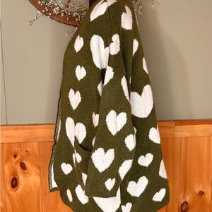 Anthropologie Maeve Halley Hearts Cardigan SZ XS/S Oversized Green/White