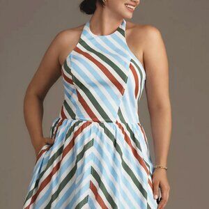 Anthropologie Maeve Halter Midi Striped Sundress Size Large
