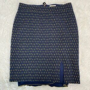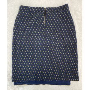 Anthropologie Maeve Hannon Navy Yellow Textured Pencil Skirt Size 12