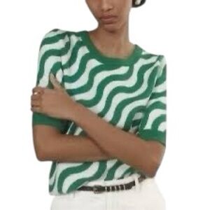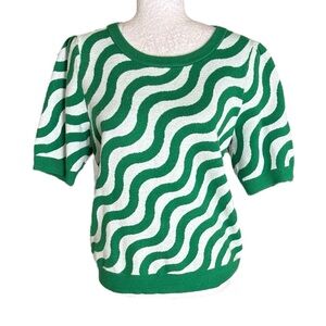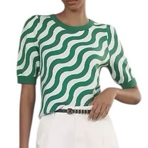 Adorable Anthropologie Maeve Green & White Wavy Striped Jacquard Sweater Tee