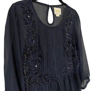 Anthropologie Maeve Helene Sequined Embellished Peplum Navy Blue Blouse Size 2