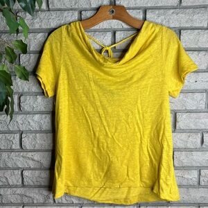 Anthropologie Maeve Horizon Linen open back cap sleeved top Gold Mustard Yellow