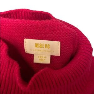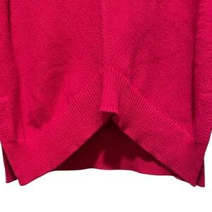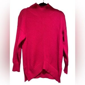 Anthropologie Maeve Hot Pink Crystal Tunic Sweater | Women Small. Sweater has a mock neck and v-cut hem in the front. In good condition- Sweater has one tiny snag on the back (see picture with my pinky finger for reference!). Comes from a smoke-free, pet-free home.