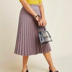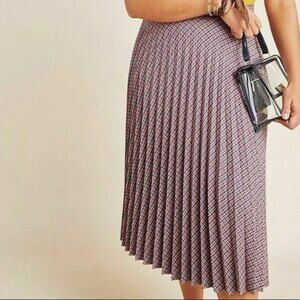 Anthropologie Maeve Houndstooth Print A-Line Pleated Midi Skirt (NWT)