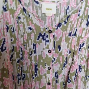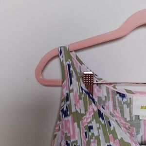 Anthropologie Maeve pink and green ikat print pleated flowy v neck button front sleeveless swing tank blouse