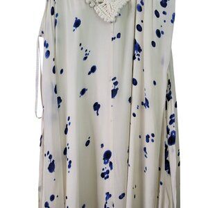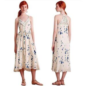 Anthropologie Maeve Inkdrop Midi Dress Tie Waist Blue White Crochet Size Large