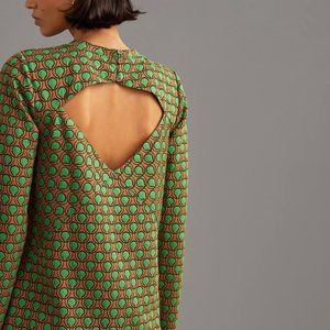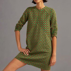 Size XS green and orange Anthropologie Maeve Jacquard Shift Mini Dress featuring a bold fun print. NWT.