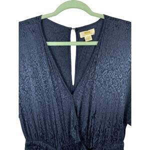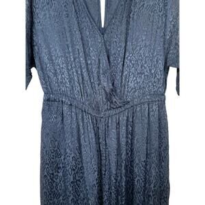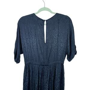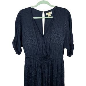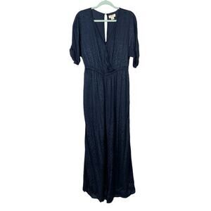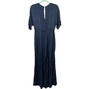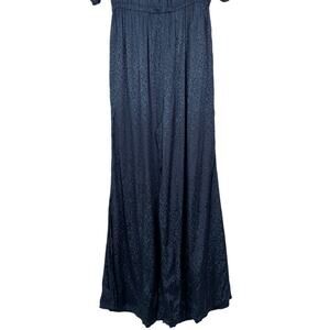 Anthropologie Maeve Jacqueline Jacquard Jumpsuit XS Navy Blue Elegant Night Out