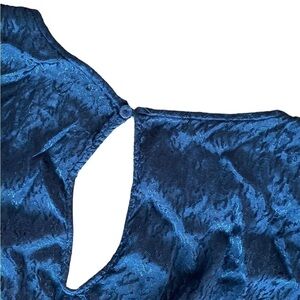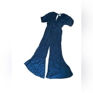 This Anthropologie Maeve Jacqueline Jacquard Romper Jumpsuit in navy blue is perfect for any occasion, featuring a V-neckline and button closure. The jumpsuit is made of blended fabric with a solid pattern and kimono sleeves.