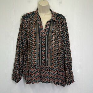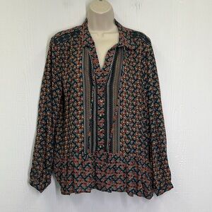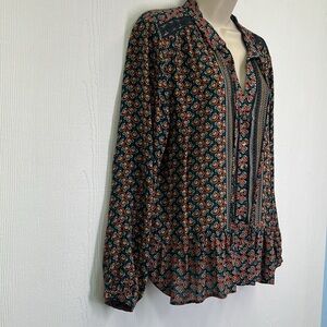 Anthropologie - Maeve Janie Flounced Colorful Print Blue Motif Blouse Size 6