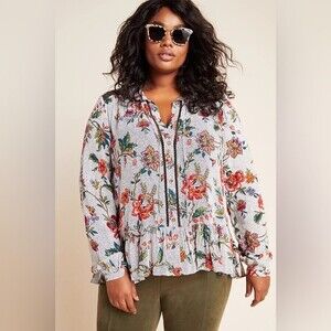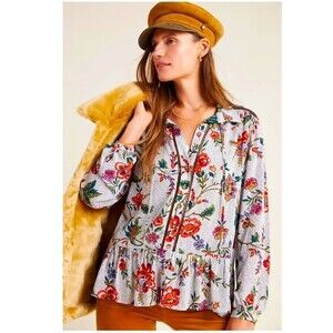 Anthropologie Maeve Janie Flounced Peasant Blouse 8 NWOT