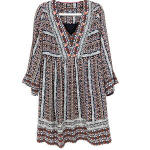 Anthropologie Maeve Jenna Black Embroidered Boho Sequin Floral Cottage Dress SML