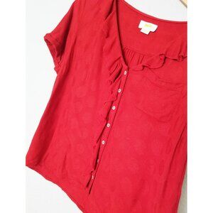 Anthropologie Maeve Jojo Ruffle V Neck Blouse Top S Red Dots Button Front Sweet