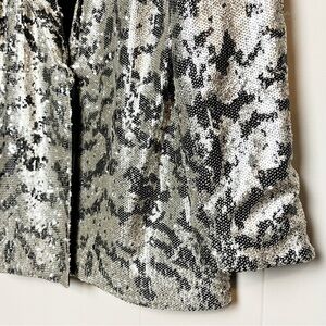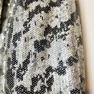 Anthropologie Maeve Jordyn Sequined Blazer Medium jacket black champagne long sequin metallic shimmer longline evening cocktail party event neutral