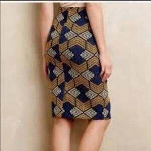 Anthropologie Maeve Kanara Cotton Knit Faux Wrap Geometric Print Pencil Skirt