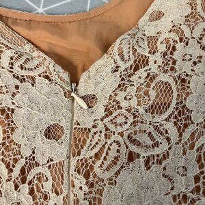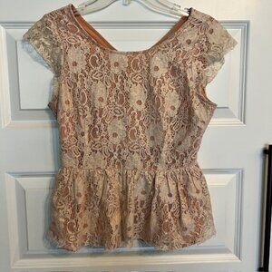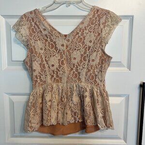 Anthropologie Maeve Katrine Lace Peplum Top Cap Sleeve Lined Blouse Nude Small