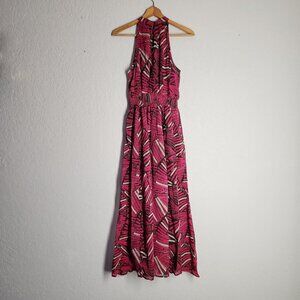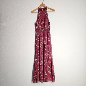 Anthropologie Maeve Kelli Halter Maxi Dress with pockets pink abstract print XS