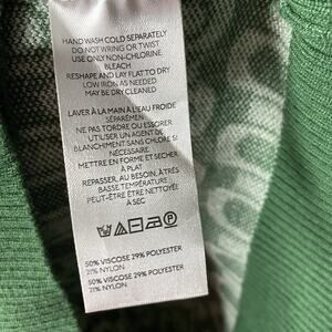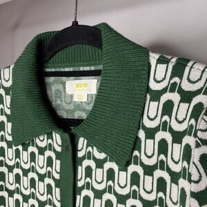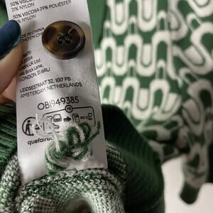 Anthropologie Maeve Kinsley Collared Cropped Cardigan Sweater Women's Small. Nice condition. Green geometric pattern. Fun sweater.