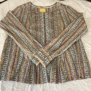 Anthropologie Maeve Long Sleeve Blouse Gelise Pintuck Metal Buttons Peasant Prairie, Medium