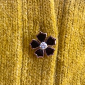 Black and gold buttons add to the uniqueness of this cardigan. Size medium, see measurements in photos.