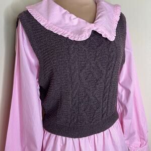 Anthropologie Maeve Layered Sweater Vest Top Medium Women Brown Pink Poplin Knit