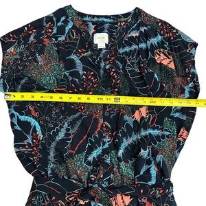 Anthropologie Maeve Leaf Print Jumpsuit Button Front Belted SZ Small P Oversized