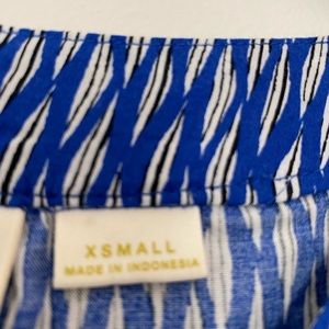 Rayon. Side pockets. Button front. Machine wash. 29.5"L. Excellent condition!