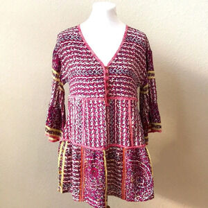 Anthropologie Maeve Silk Lilyana Tiered Boho Chic Top Blouse