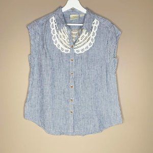 Anthropologie Maeve Linen w/ Lace Button Down Sleeveless Blouse - S