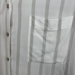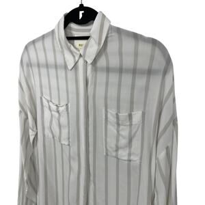 Anthropologie Maeve Long Sleeve Button Front Tunic Top Gray White Striped XS