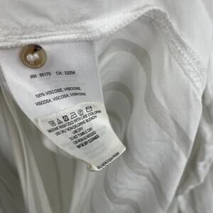 • Features: White with gray stripes, Double front breast pockets, Tie front, Concealed button up front, Longer in back, 100% Viscose