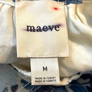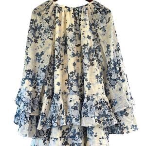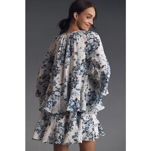 Anthropologie Maeve Long-Sleeve V-Neck Mini Swing Dress Blue Floral Medium New