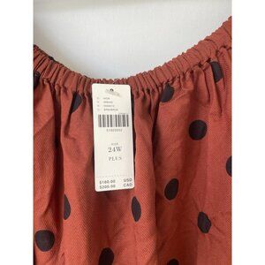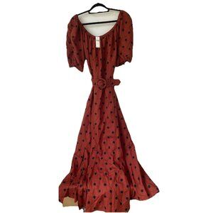 Anthropologie Maeve Lucienne Off-The-Shoulder Belted Maxi Dress Rust Brown Black Polka Dot Plus 24W