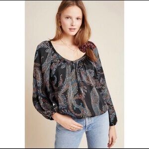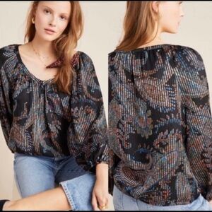 Anthropologie Maeve Madeira Burnout Satin Blouse XS