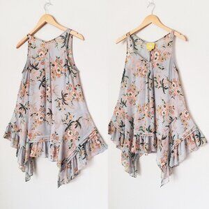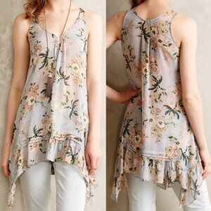 Anthropologie Maeve Magda Ruffle Floral Tunic Tank S Romantic Fairy Sheer $98