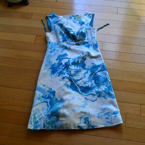 Anthropologie Maeve Marbled Waters Dress White Blue Size 4