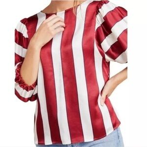 Anthropologie Maeve Maria Balloon Sleeve Striped Satin Top NWT Size 4
