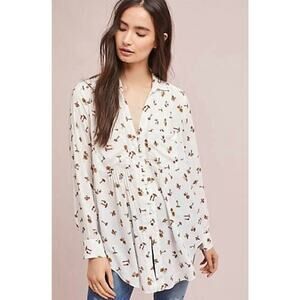 Anthropologie Maeve Matilda Toadstool Mushroom Button down Shirt top blouse XS
