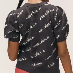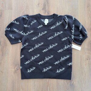Says "Ma Cherie" or My Dear in French. Short puff-sleeve. Pullover styling. Hand wash