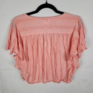 Anthropologie Maeve Medium Nell Pink Dot Surplice Crop Ruffle Shirt Blouse