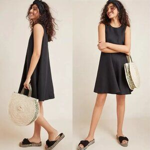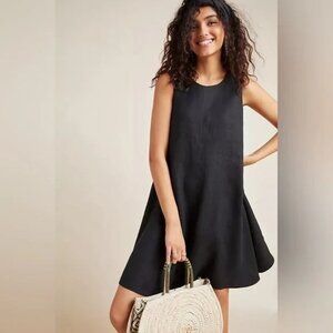 Anthropologie Maeve Melbourne Swing Dress 100% Linen Black Size XS