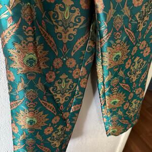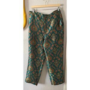 Anthropologie Maeve Melyssa Metallic Jade Paisley Jacquard Trousers Size Large