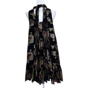 Anthropologie Maeve Metallic Floral Swing Dress Halter Evening Cocktail Size S N