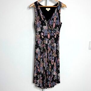 Style Tags: Anthropologie Maeve jersey knit dress stretch black knit pink paisley size small casual or dressy