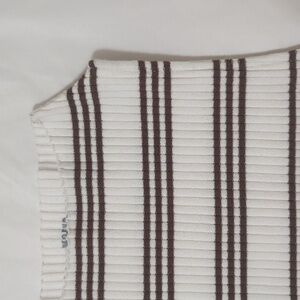 Soft, stylish, and effortless. This Maeve sleeveless top features a classic cream base with brown stripes, a mock neck, and pullover styling. Made from a stretchy ribbed knit, it's super soft and flattering with a slim fit. Perfect for layering or wearing on its own during warmer days.