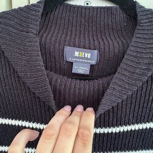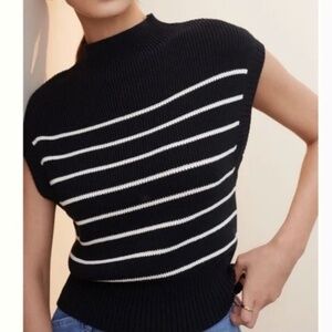 Anthropologie Maeve Mock Neck Women's Sweater Tee SIZE XXSMALL Black and White