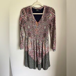 Anthropologie Maeve Multicolor Bohemian Floral Smocked Mini Dress Small